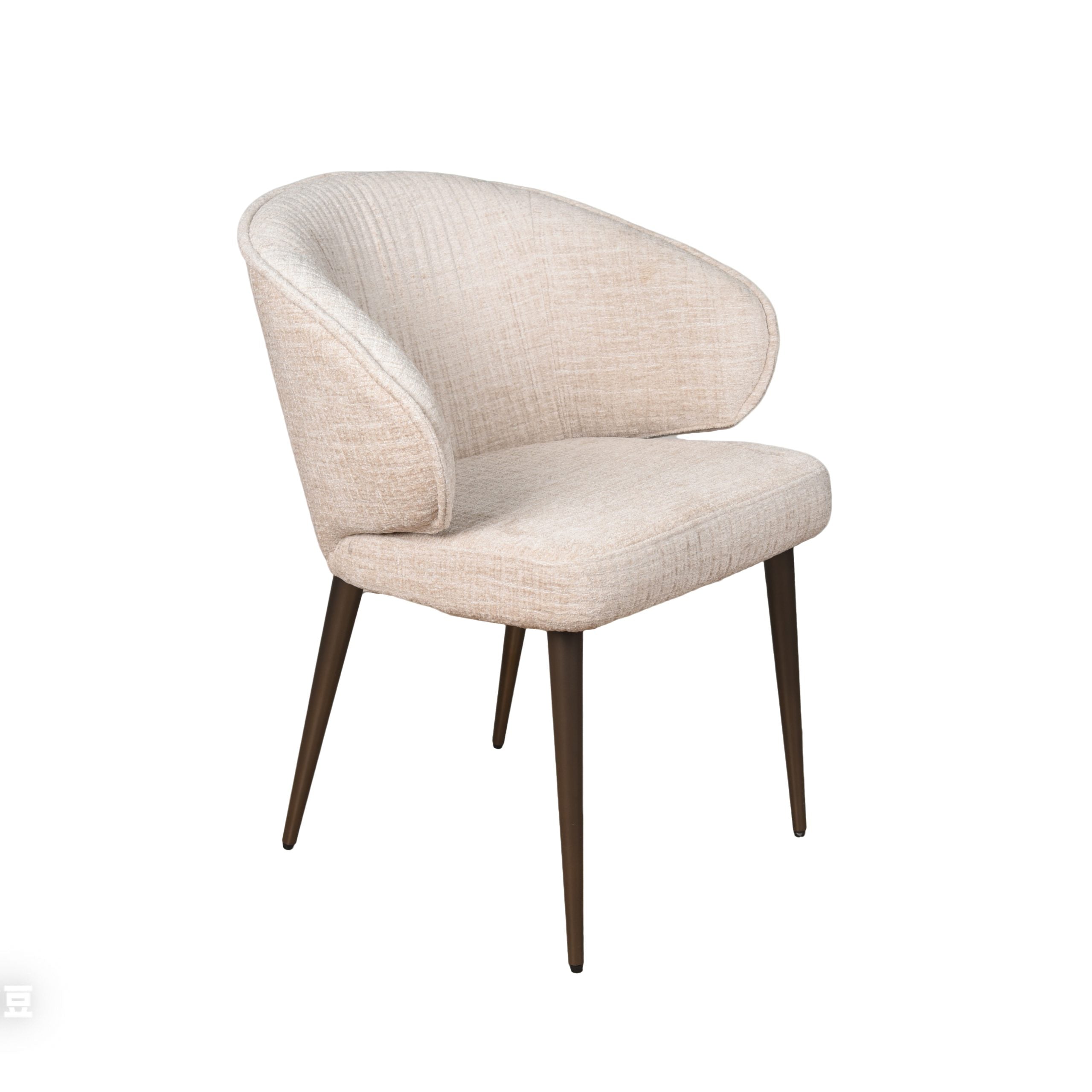 Deze stoel is uit voorraad leverbaar in de stof Jasper cream 11 met een metalen onderstel met de naam Orion in de kleur anodic brown ( 2e foto )LET OP. Dit is een populaire stoel! Voor de accurate levertijd is het verstandig om even contact met ons op te nemen.