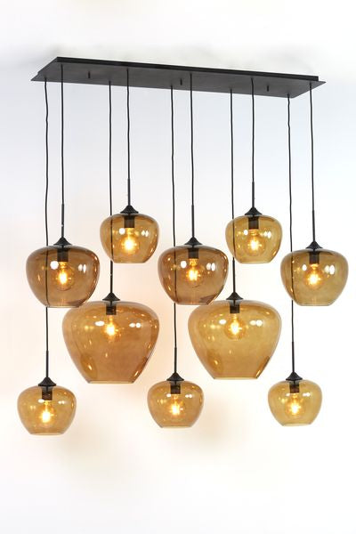 Hanglamp Mayson 10 lamps mat zwart+glas bruin